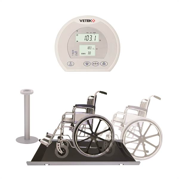 Rullstolsvåg med funktioner; Vikt, Tara, BMI,5 minnen, Hold, Auto off inställbar.